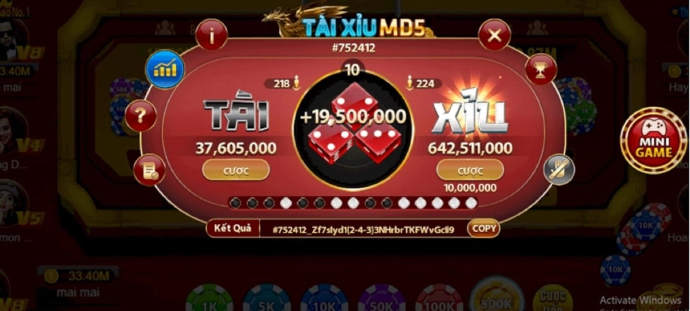 Tài xỉu MD5, viết tắt của thuật toán Message Digest Algorithm 5, là một phương pháp mã hóa được sử dụng để đảm bảo tính xác thực trong cá cược trực tuyến. Thuật toán này tạo ra một chuỗi mã hash duy nhất từ dữ liệu đầu vào, giúp người chơi kiểm tra tính trung thực của kết quả. Mã hash này có dạng 32 ký tự thập lục phân và không thể đảo ngược.